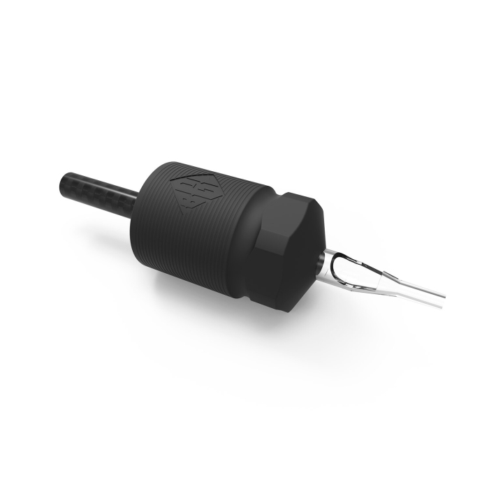 Os Tubos Descartáveis de Fibra de Carbono Black N Gold Legacy são dos tubos mais resistentes do mercado. A haste posterior é feita de fibra de carbono extremamente leve mas muito resistente. As coberturas de grip de composto de silicone têm profundas relevâncias oferecendo uma aderência ergonómica e conforto. As pontas de plástico transparente permitem-lhe ver a agulha e o fluxo de tinta.