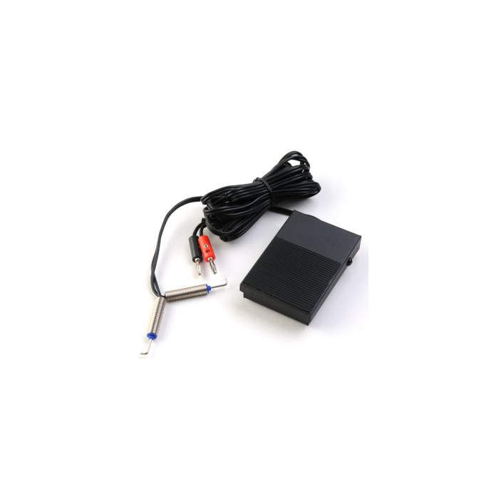 O conjunto completo de pedal e cabo clip cord pode ser usado com qualquer fonte de alimentação com entradas de ficha tipo banana.