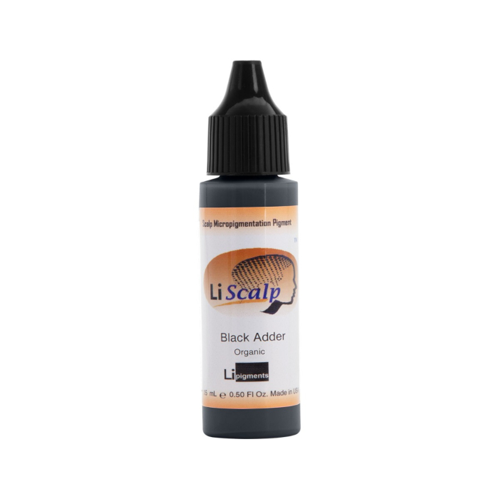 Li Pigments Black Adder é o tom preto escuro mais profundo na gama Li Scalp Organic. Use apenas como aditivo. Recomendado para uso por técnicos experientes apenas devido a ser um pigmento carbono preto.