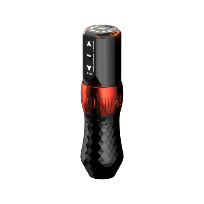 O corpo desta máquina de estilo caneta sem fios é em preto elegante, com um grip de facetas losangulares que se alarga até um diâmetro máximo de 37 mm. A profundidade de agulha de 4 mm é facilmente ajustável rodando o Powerpack, e a profundidade e o traço da agulha podem ser ajustados manualmente com o kit de ferramentas incluído.