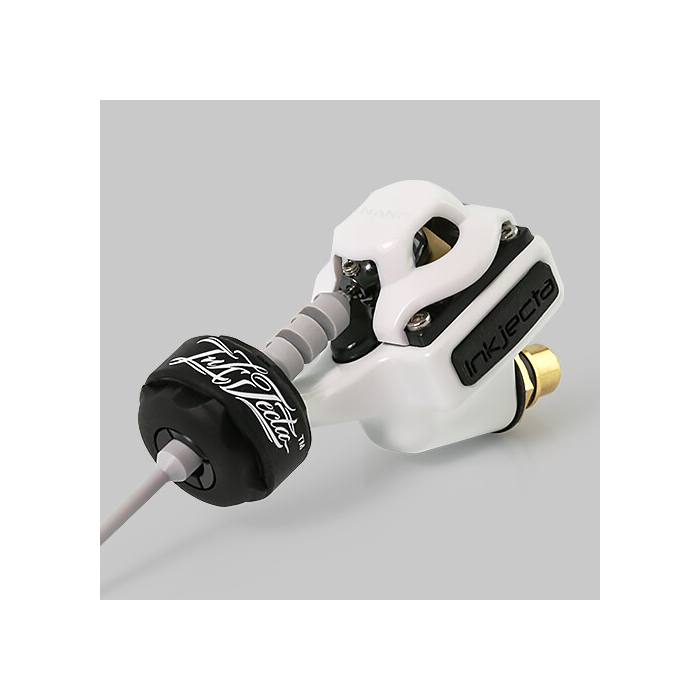 A Flite Nano Elite da Inkjecta é uma máquina de tatuagem rotativa para cartuchos. Tem como característica uma construção de liga de tarugo e um motor personalizado de tecnologia Nano, que assegura um desempenho muito fácil. A Flite Nano Elite da Inkjecta é a mais versátil das máquinas da Inkjecta: vem com todas as quatro barras de acionamento: torção lsuave, média e dura e a semi rígida preta. Isto permite-lhe configurar a dureza da sua Inkjecta exatamente como pretender.