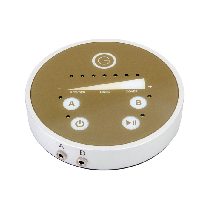 A máquina Multitalent tem 2 portas para ligar peças de mão, tais como a Dermograph SLS ou a Dermograph Classic da Goldeneye (vendidas em separado). Pode ajustar facilmente a velocidade através da barra tátil na máquina, com 7 configurações diferentes por onde escolher.