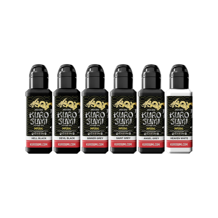 O Greywash Shading Set foi criado pela Kuro Sumi e junta-se à nova gama Imperial em conformidade com o REACH da UE. Este conjunto de tintas apresenta 6 tintas inspiradas pelas luzes e sombras da cidade de Nova Iorque e foi concebido para permitir que os artistas captem todos os contornos da vida real nas suas tatuagens.